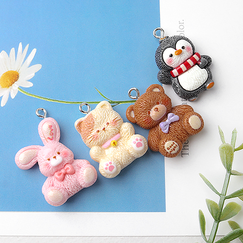 - 싼비즈 [6708-12]아크릴펜던트 복슬복슬 동물 4종 ,1개