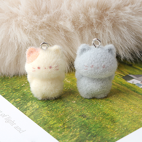 - 싼비즈 [6628-73]후로킹펜던트 동글고양이 18x24mm ,1개