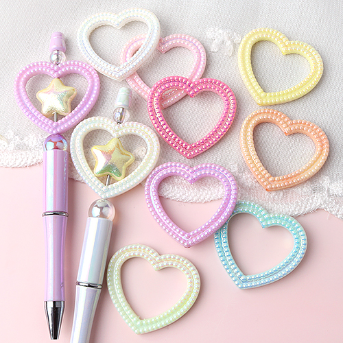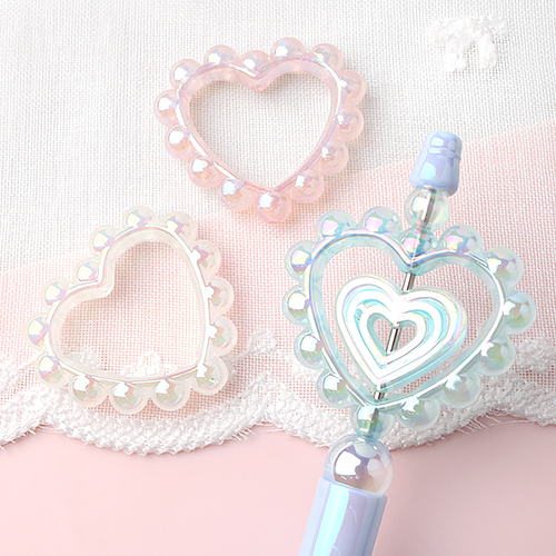 - 싼비즈 [6716-06]아크릴비즈 볼펜꾸미기 볼꾸재료 오로라공간도트하트 39.5x41.5mm 랜덤발송 ,1개