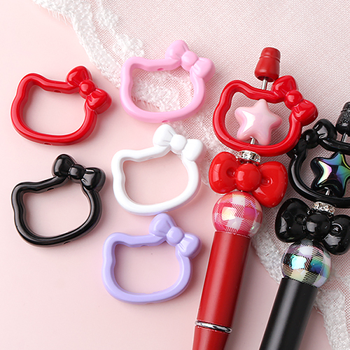 - 싼비즈 [6455-06]아크릴비즈 볼펜꾸미기 볼꾸재료 오로라고양이리본링 40x42mm ,1개