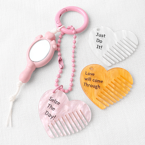 - 싼비즈 [H-057]빗키링 휴대용 아크릴자개 하트콤브빗 35x30mm ,1개