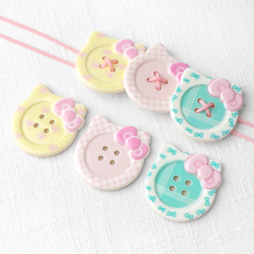 - 싼비즈 [5997-13]단추키링만들기 끈갈피부자재 키링부자재 고양이단추 24x25mm ,1개