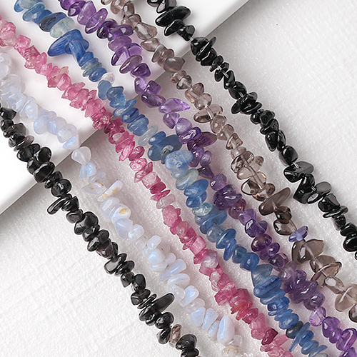 - 싼비즈 [5597-01]원석 칩스 소 약 4~10mm 천연석 6종 ,1줄(약80cm)