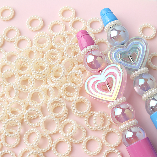 - 싼비즈 [6717-24]아크릴비즈 볼펜꾸미기 볼꾸재료 진주도트링 10mm 크림 ,30개
