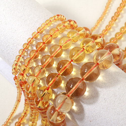 - 싼비즈 [51-018]원석라운드 12mm 황수정 ,반줄(약15개)