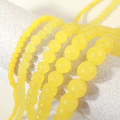 - 싼비즈 [5201-02]원석라운드 4mm 신백옥 연노랑 ,반줄(약40개)