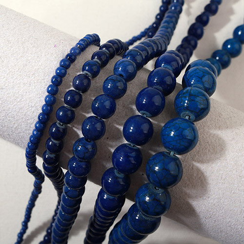 - 싼비즈 [5205-08]원석라운드 6mm 모조송석 사파이어 ,반줄(약28개)