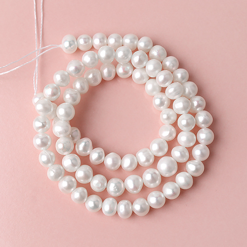 - 싼비즈 [6050-06]담수진주코팅 못난이 약 5x7mm 화이트 ,1줄(약35~36cm)