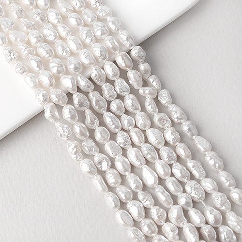 - 싼비즈 [6050-08]담수진주코팅 못난이쌀알모양 약5x6mm 화이트 ,1줄(약35~36cm)