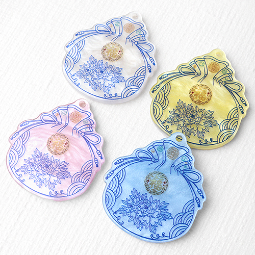 - 싼비즈 [6609-23]아크릴펜던트 한국 전통 키링만들기재료 자개복주머니 34x38mm ,1개