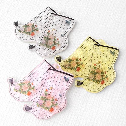 - 싼비즈 [6609-24]아크릴펜던트 한국 전통 키링만들기재료 자개꽃버선 42x38mm ,1개