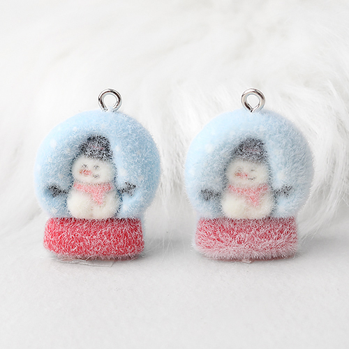 - 싼비즈 [6627-07]후로킹펜던트 크리스마스 스노우볼 눈사람 21x25mm ,1개