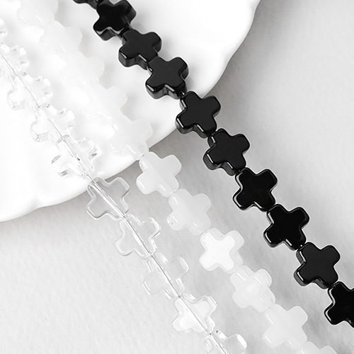 - 싼비즈 [4958-05]글라스통과형 십자가 10mm ,반줄(약35개)