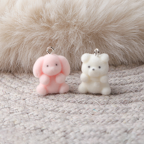 - 싼비즈 [6628-70]후로킹펜던트 동물 핑크토끼 화이트곰 ,1개