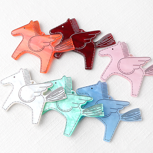 - 싼비즈 [6603-07]아크릴펜던트 붉은말의해 자개유니콘 52x38mm ,1개