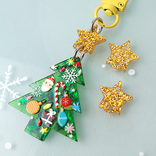- 싼비즈 [6797-03]아크릴펜던트 크리스마스 글리터별양고리 16mm ,1개