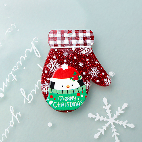 - 싼비즈 [6797-04]아크릴펜던트 크리스마스 글리터펭귄장갑 33x40mm ,1개