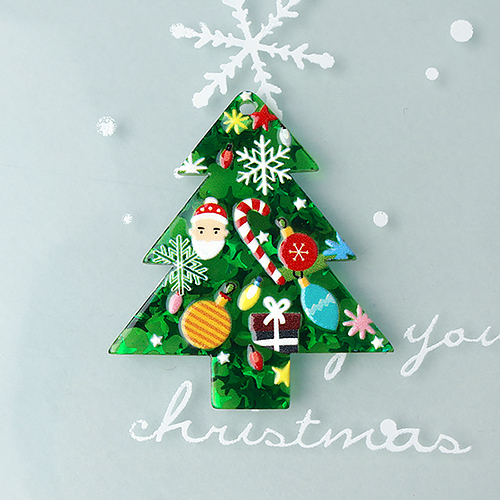 - 싼비즈 [6797-05]아크릴펜던트 크리스마스 글리터트리 37x42mm ,1개