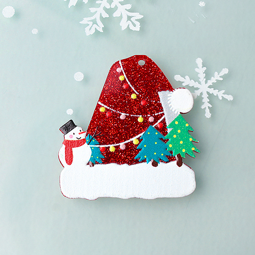 - 싼비즈 [6797-07]아크릴펜던트 크리스마스 글리터산타모자 38x39mm ,1개