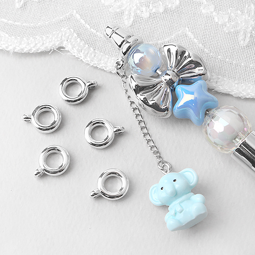 - 싼비즈 [9-659-03]볼펜꾸미기 볼꾸재료 볼꾸부자재 체인연결링 10mm 실버 ,1개