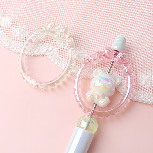 - 싼비즈 [6455-06]아크릴비즈 볼펜꾸미기 볼꾸재료 오로라고양이리본링 40x42mm ,1개