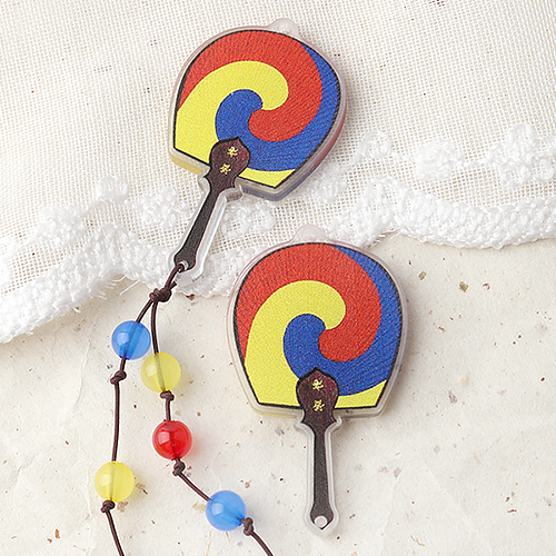 • 싼비즈 [6605-05]아크릴펜던트 한국 전통 태극선부채 양고리 27x47mm ,1개