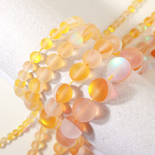 - 싼비즈 [5207-29]원석라운드 8mm 합성호박석 그라데이션 ,1줄(약44개)