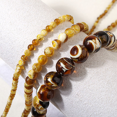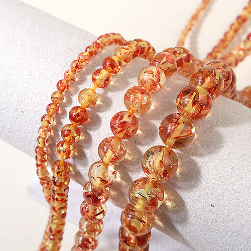 - 싼비즈 [5207-26]원석라운드 10mm 합성호박석 허니믹스 ,반줄(약17개)