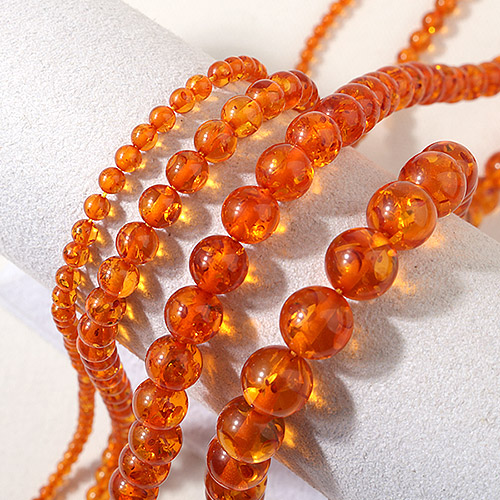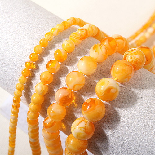 - 싼비즈 [5207-24]원석라운드 10mm 합성호박석 오렌지 ,반줄(약17개)