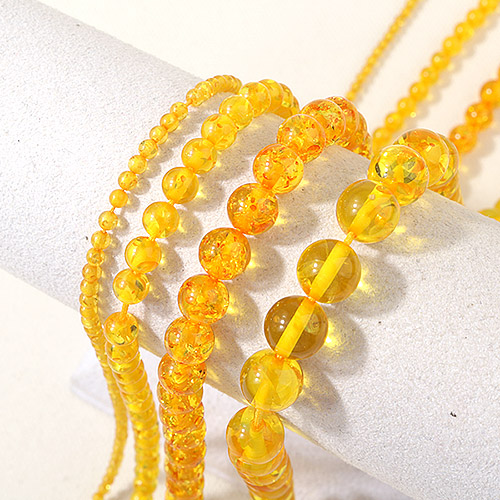- 싼비즈 [5207-21]원석라운드 10mm 합성호박석 옐로 ,반줄(약17개)