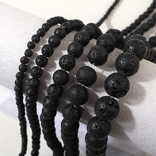 - 싼비즈 [51-046]원석라운드 10mm 화산석블랙 ,반줄(약17개)