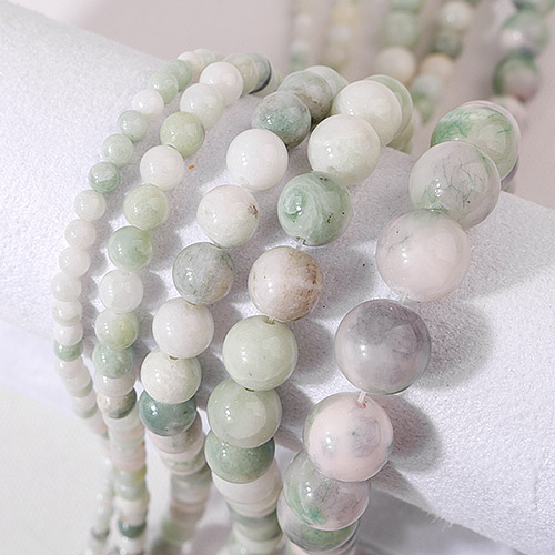 - 싼비즈 [5209-13]원석라운드 10mm 채운옥 화이트그린 ,반줄(약17개)