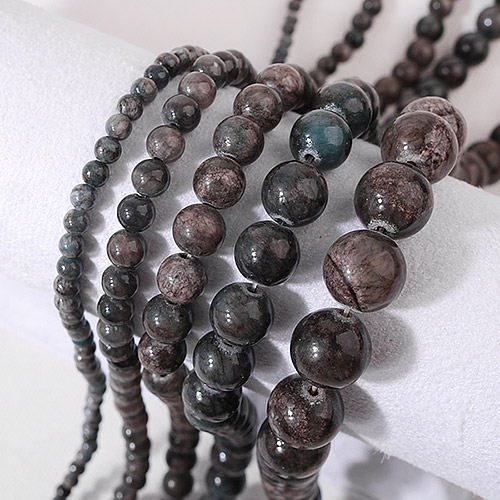 - 싼비즈 [5209-10]원석라운드 10mm 채운옥 차콜 ,반줄(약17개)