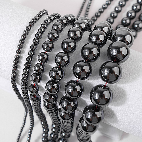 - 싼비즈 [51-007]원석라운드 10mm 헤머타이트 ,반줄(약17개)