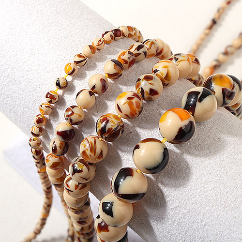 - 싼비즈 [5207-27]원석라운드 10mm 합성호박석 베이지브라운 ,반줄(약17개)