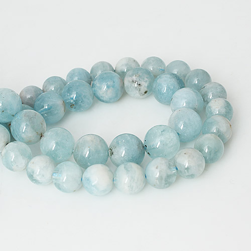 - 싼비즈 [51-080]원석라운드 10mm 천연석 아쿠아마린 ,반줄(약17개)