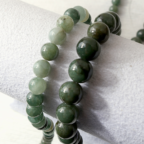 - 싼비즈 [51-086]원석라운드 10mm 천연석 쑥비취옥 ,반줄(약17개)
