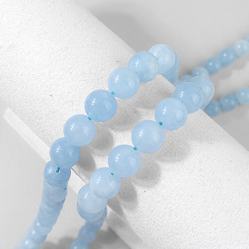 - 싼비즈 [5200-04]원석 라운드 신백옥 10mm 투톤블루 ,반줄(약17개)