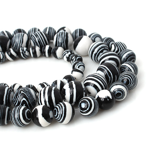 - 싼비즈 [5207-34]원석라운드 10mm 공작석 블랙화이트 ,반줄(약17개)