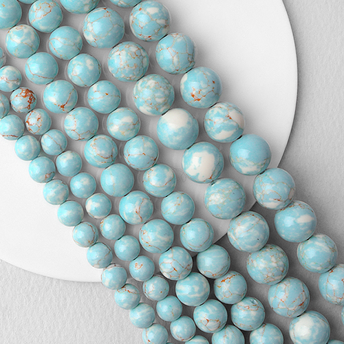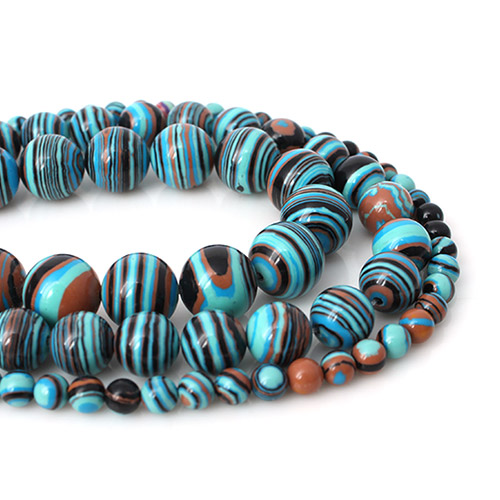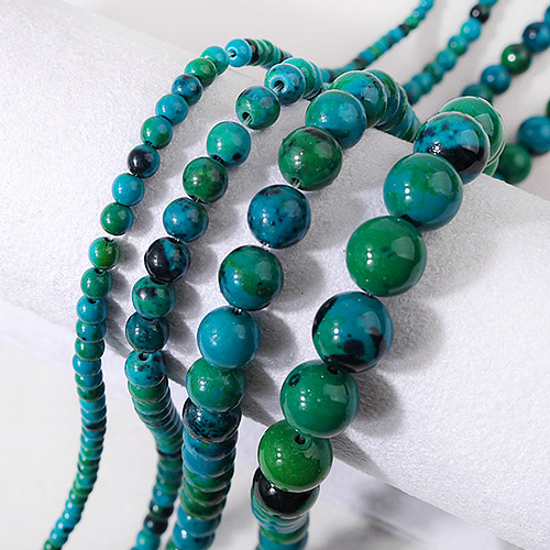 - 싼비즈 [5207-33]원석라운드 10mm 공작석 블루믹스 ,반줄(약17개)