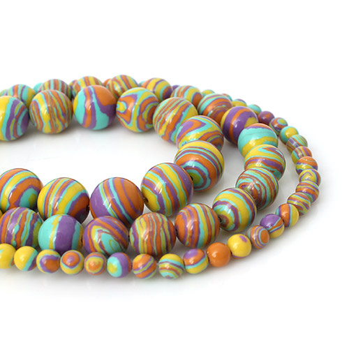 - 싼비즈 [5207-32]원석라운드 10mm 공작석 레드믹스 ,반줄(약17개)