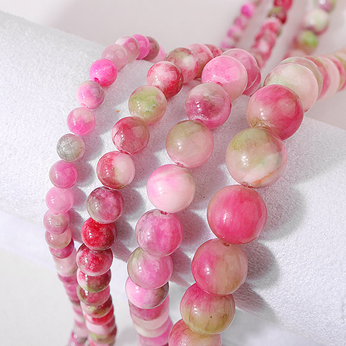 - 싼비즈 [5209-12]원석라운드 10mm 채운옥 핑크그린믹스 ,반줄(약17개)