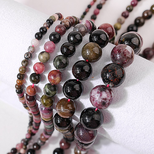 - 싼비즈 [51-010]원석라운드 10mm 투어마린 ,반줄(약17개)