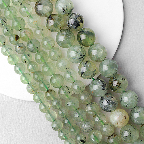 - 싼비즈 [51-078]원석라운드 10mm 천연석 그린가넷 ,반줄(약17개)
