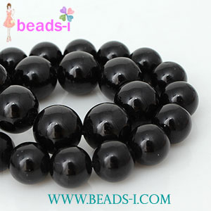 - 싼비즈 [51-089]원석라운드 10mm 블랙투어마린 ,반줄(약17개)