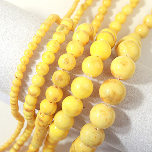 - 싼비즈 [5204-02]원석라운드 10mm 금채옥 옐로 ,반줄(약17개)