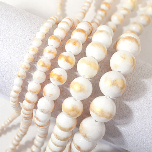 - 싼비즈 [5204-01]원석라운드 10mm 금채옥 화이트 ,반줄(약17개)