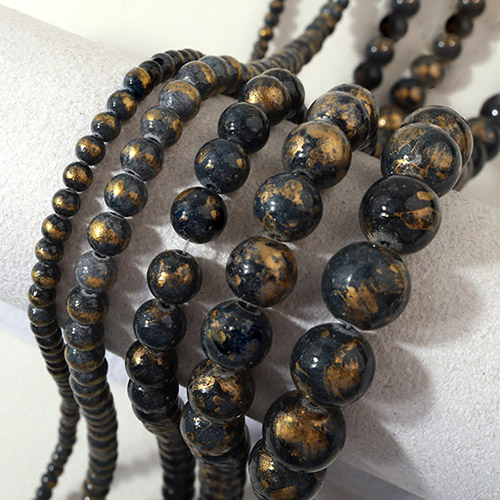 - 싼비즈 [5204-10]원석라운드 10mm 금채옥 블랙 ,반줄(약17개)