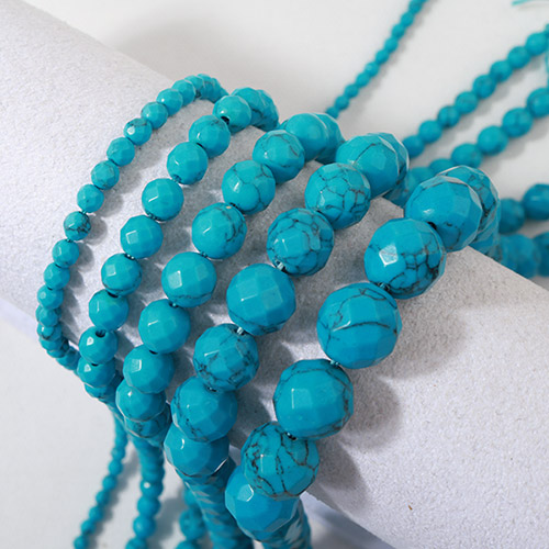 - 싼비즈 [5-451]원석축구볼컷 12mm 터키석컷 ,반줄(약15개)