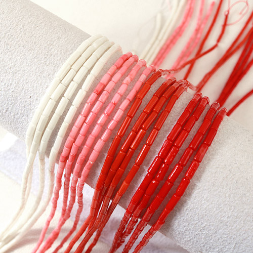 - 싼비즈 [5500-01]원석 원통막대 약2x4mm 산호 ,반줄(약19cm)